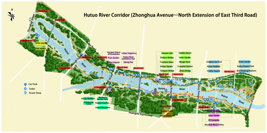 - Chen, Y.; Jia, B.; Wu, J.; Liu, X.; Luo, T. Temporal and Spatial Attractiveness Characteristics of Wuhan Urban Riverside from the Perspective of Traveling. Land 2022, 11, 1434. [Google Scholar] [CrossRef]