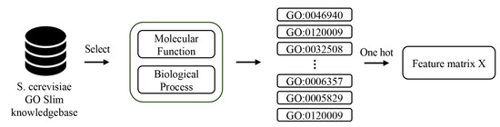 - Feature matrix construction. After the first step is completed and the adjacency matrices composed of multiple protein subnetworks are obtained, each protein within the subnetworks is annotated using GO Slim information, followed by conducting one-hot encoding. This process constructs multiple feature matrices that represent the GO Slim annotations of the protein subnetworks.