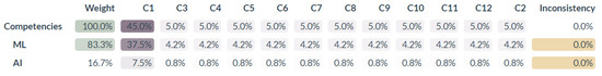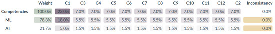 Table A1, Table A2, Table A3, Table A4, Table A5, Table A6, Table A7, Table A8, Table A9, Table A10, Table A11 and Table A12 present the “topic-module” relation from the viewpoint of the corresponding competencies.