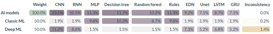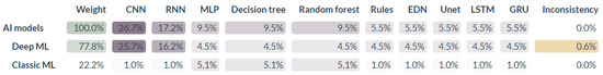 Within the framework of the FAAI project, 267 real cases based on AAI solutions were studied. Table 1 shows the areas of the tasks, together with their significance. The scope of artificial intelligence problems is broad and diverse. AI can be applied to a wide range of domains and can address various types of problems. Some areas where AI can be leveraged are as follows: automation, decision support, natural language processing, image and video analysis, healthcare, robotics and autonomous systems, gaming and entertainment, cybersecurity, smart cities, and environmental monitoring. These examples represent just a fraction of the scope of AI problems. AI continues to advance and find applications in various industries and sectors, creating new opportunities for solving complex challenges and improving efficiency and decision-making processes. A wide variety of real AI cases should be taken into account when designing a competency-based course on AI.