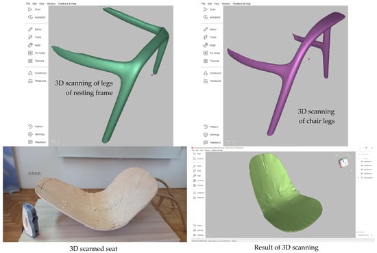 In the furniture industry, constantly creating products with complex shapes and forms presents a challenge for engineers, especially when dealing with prototypes of designer concepts [6]. The prototyping, from concept to final product, often involves multiple iterations due to difficulties in translating the designer’s vision into a physical form [7,8]. Three-dimensional scanning offers a significant improvement. After the designer creates a full-size, hand-crafted concept design, engineers can use 3D scanning technology to capture a digital copy. This digital model can be used to create a CAD model for future manufacturing [9]. There is a research gap in knowledge about the usefulness of 3D scanning in all stages of furniture production.