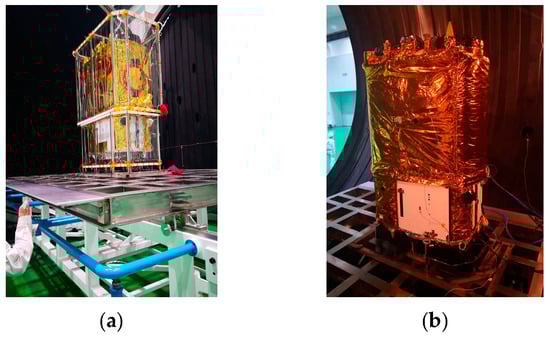 The satellite was placed in a vacuum container for thermal tests, and the test state is shown in Figure 3.