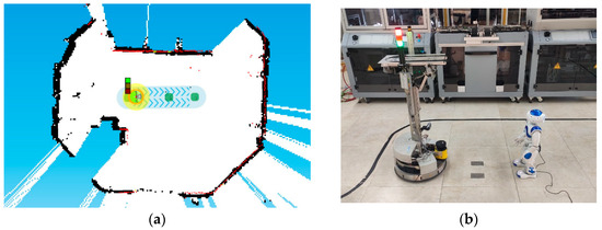 (a) Digital mapping and (b) the physical environment for obstacle avoidance.