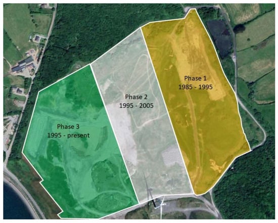 The ash used for the analysis was taken from that stored at the Moneypoint power station situated in Co. Clare, Ireland (Figure 1). The samples for the study were obtained from three different sections within the ash field, reflecting ash deposits from different phases of operation (Figure 2). Four ash samples (each 5 kg) were collected at each of the three sections. The ash was taken from a depth of 1 m from the surface and stored within air tight containers to maintain the moisture content.