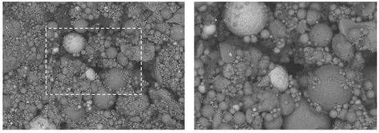 Particle-size distribution and SEM images of the ash taken from the site are shown in Figure 5 and Figure 6. As may be seen, the ash consists of very fine particles, with circa 99% passing a 0.1 mm sieve. This can also be seen in the SCM images taken at a 50 µm resolution.