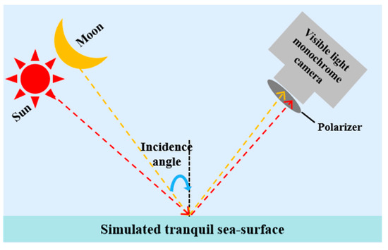 Herein, represents the angle of incidence of light on the sea surface; denotes the angle of refraction of light entering the seawater; is the refractive index of the air above the sea surface; and is the refractive index of seawater. Based on the reflection coefficients of the two polarization components, the degree of polarization P of the sea surface glare is quantified as follows: