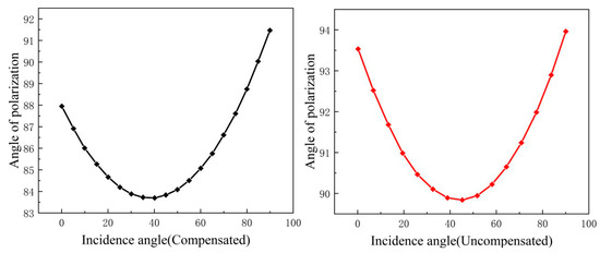 Relationship between incidence angle and polarization angle before and after orientation information compensation.