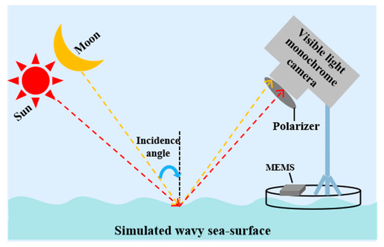 In addressing the suppression of sea surface glare within passive optical imaging, researchers have proposed various solutions. These include the use of the Bidirectional Reflectance Distribution Function (BRDF) [1] model to suppress sea surface glare; suppression based on the physical relationships of different spectral bands [2]; glare suppression using Noise-Driven Suppression of Glare Control (ND-SGC) [3]; and methods based on polarization filtering [4,5,6,7,8,9,10,11,12,13,14,15,16]. Compared to the BRDF model, spectral band relationships, and ND-SGC methods, polarization filtering offers significant advantages in terms of real-time capability, ease of implementation, and suppression effectiveness. In 2006, Luo Yangjie and colleagues [8] discovered that glare could be effectively suppressed when light incidents at the Brewster angle. However, this method’s stringent incident conditions pose implementation challenges at sea. In 2007, Du Jia [9] demonstrated the theoretical possibility of suppressing glare using polarization at non-Brewster angles. Zhao Naizhuo [10] proposed a method for polarization-based glare suppression on the sea surface under ideal indoor mirror conditions, applicable at any incident zenith angle. However, overcoming the effects of sea surface fluctuations remains a challenge in practical applications. Addressing these fluctuations, Zhao et al. [16], in 2016, utilized the Fresnel and Cox–Munk models to establish a mid-wave infrared polarization imaging system, achieving glare suppression by adjusting the angles of dual polarizers in front of the detector. In 2017, Chen Wei and colleagues [11] analyzed the polarization characteristics of sea surface glare and maritime targets, designing a visible light polarization detection system based on a dual linear polarizer.