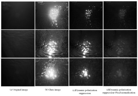 Although utilizing fixed polarization angles can effectively suppress sea surface glare, this method lacks adaptability to the varying characteristics of the glare. Consequently, researchers have proposed combined image processing approaches to enhance the adaptability of sea surface glare suppression methods. In 2019, Chen Wei et al. [12] introduced a solar glare suppression method based on the fusion of polarimetric radiance maps. In 2021, Ye Song and colleagues [7] implemented effective suppression of sea surface glare through the temporal fusion of image sequences generated with real-time polarization information. Yang Meimei and her team [14] proposed a method combining polarization filtering with polynomial fitting to suppress solar glare. In 2022, Li Yansong et al. [15] combined both single and dual polarizer modes with digital image filtering algorithms to suppress the background of solar glare.
