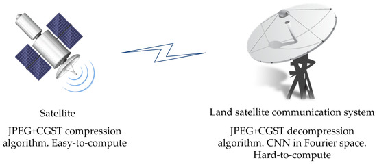 The possible scenario of applying the CGST-based compression algorithm in the satellite image transmission system.