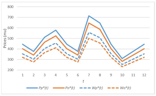 | Wo(t) | Product’s unit wholesale price from the manufacturer to the online platform during period t |