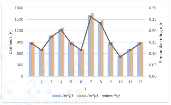 - For each period, the production process could include a ratio τ(t) of remanufactured subcomponents in the manufacturing of new products