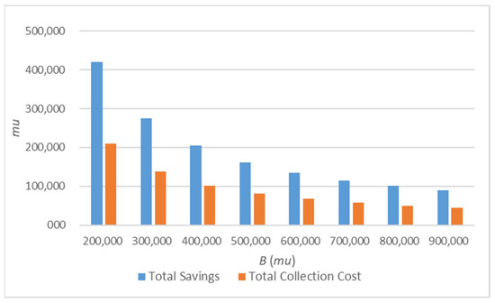 4.3. Sensitivity Analyses following the Variations in the Scaling Parameter of the Collection Cost B