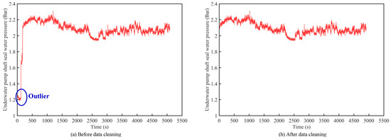 Finally, outliers were removed within the upper and lower limits. Taking one monitoring point (Shaft seal water pressure) of CSD as an example, this method effectively detects the outlier and remove it, this process can be summarized as Figure 5.