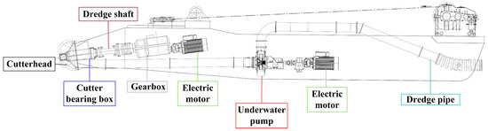 - As shown in Figure 7, the cutting system of a cutter suction dredger comprises a front-end device, a cutter, a cutter shaft, a cutter bearing box, a gearbox, a motor, an underwater pump, and a dredger pipe. This system controls cutter movement, and the mixture of mud and water produced by cutting the soil is collected through the suction inlet and dredger pipe. Therefore, based on expert experience, it can be concluded that cutter speed, cutter bearing flushing pressure, motor indicators (power, voltage, current), and traverse speeds are correlated with mud flow rate and concentration, influencing shaft seal water pressure. In summary, these parameters collectively constitute “cutter-related indices” that significantly impact shaft seal water pressure.