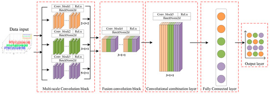 CNN is a classic deep-learning algorithm. However, in this study, the input covers 25 parameters that are correlated with the output. MCNN focuses on the extraction of multi-scale features, and its structure usually contains multiple parallel convolution and pooling layers. Each layer focuses on feature extraction at different scales, which helps capture feature information of different targets. The overall structure of MCNN is shown in Figure 11. The multi-scale convolution module in Figure 11 uses three convolution layers with different convolution kernel sizes to extract multi-scale features of the input data. The outputs of these feature extraction layers are further fed into the fourth fusion convolutional layer for feature fusion operations. Finally, the features processed by a deep convolutional model are transferred into the fully connected layer to produce the final output result.