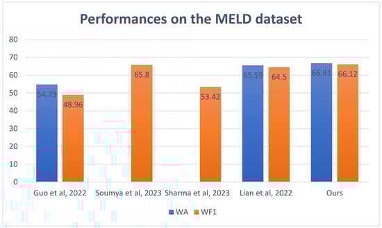 Visualization of performances on the MELD dataset [11,42,43,44].