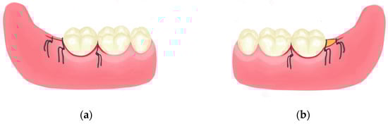 8. Pasqualini, D.; Cocero, N.; Castella, A.; Mela, L.; Bracco, P. Primary and secondary closure of the surgical wound after removal of impacted mandibular third molars: A comparative study. Int. J. Oral Maxillofac. Surg. 2005, 34, 52–57. [Google Scholar] [CrossRef]