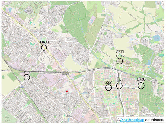 Map with marked locations where samples were collected for research (map data from © OpenStreetMap).