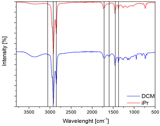 FT-IR spectroscopy of extracts obtained from fractions extracted with DCM and iPrOH.