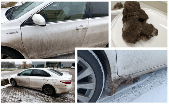 - ADAC. Tyre Wear Particles in the Environment. 2022. Available online: https://assets.adac.de/image/upload/v1639663105/ADAC-eV/KOR/Text/PDF/Tyre_wear_particles_in_the_environment_zkmd3a.pdf (accessed on 8 April 2024).