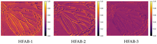 Figure 9. HFAB-1, HFAB-2, and HFAB-3 are the feature maps corresponding to the first, second, and third FSAB outputs in the HF path.
