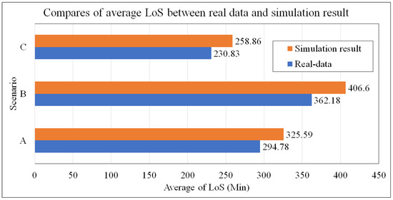 Compares of average LoS between real data and simulation result (min).