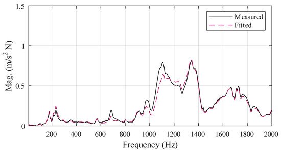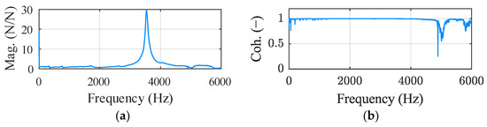 where and denote the discrete Fourier transform of the acceleration and force signals and respectively; denotes the complex conjugate of . Similarly, the auto-spectrum of the force and acceleration signals are defined as in the following Equations (3) and (4), respectively.
