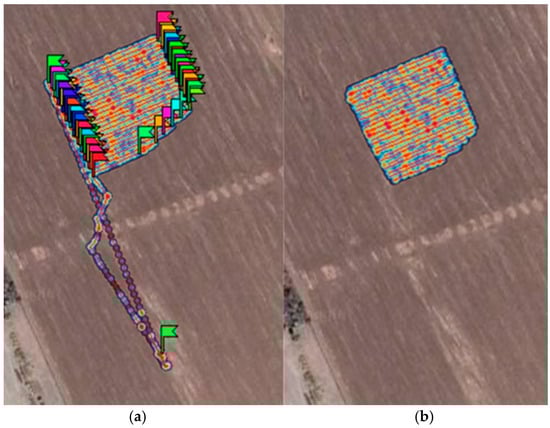 The part of the drone flight program before (a) and after (b) the application of GeoHammer software.