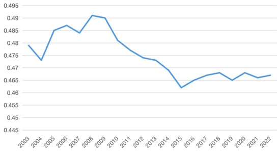 China’s Gini Coefficient for per capita disposable income (2003–2022). Data source: the official website of the National Bureau of Statistics of China.