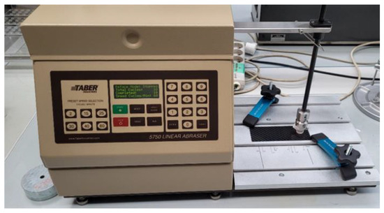 The 50 × 140 mm test plates were conditioned under normal conditions for 4 h before the test. The samples were rubbed dry and wet with a special cloth, using, in addition to demineralised water, other operating fluids typically used in cars: gear oil, brake cleaner, brake fluid, G48 radiator fluid, and battery acid (37% H2SO4). The section over which the samples were rubbed was 104 ± 3 mm. The rubbing rate is one rubbing cycle per second, back and forth, 20 times (10 times in one direction and 10 times in the other direction) with a force of 9 ± 0.2 N. These values are defined by the test standard. They make it possible to determine the total rubbing distance, which in the case in question was approximately 2.1 m.