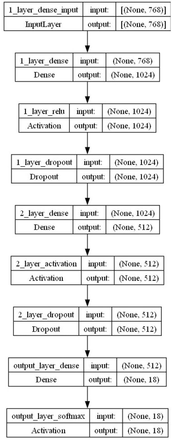 The optimal architecture of the LaBSE+FFNN approach that was determined using Hyperas and Hyperopt.