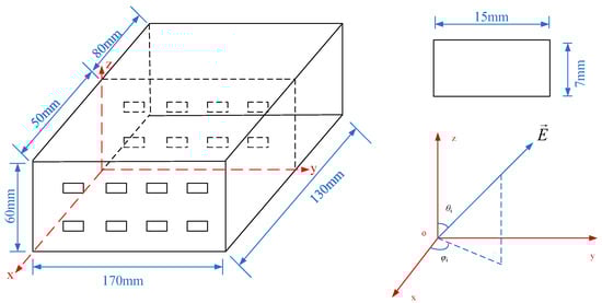 With the widespread use of electronic devices in recent years, electromagnetic pulse (EMP) protection technology for electronic devices has received extensive attention. In the realm of electrical engineering, EMP interference presents a formidable challenge, impacting the functionality of electronic devices and, in severe instances, leading to irreversible damage to such equipment [1,2]. To mitigate the adverse effects of EMP on electronic systems and apparatus, the deployment of shielding chassis has become a standard practice within the engineering domain [3,4,5]. Lightweight portable chassis are widely used, such as for small portable radar chassis, for the shielding body of important electronic equipment for aircraft and vehicles, and for small metal square cabins. For most portable electronic devices, shielding enclosures can significantly increase the overall size and weight of the electronic device. As a result, shielding cavities generally have holes and slots for heat dissipation, wiring, and splicing. However, these holes and slots also become important paths for electromagnetic wave coupling into electronic devices, thus reducing the shielding effect [6,7,8]. Therefore, in scenarios where lightweight shielding materials are required, such as in the aerospace field, a lightweight EM shielding chassis with both shielding performance and heat dissipation is needed.