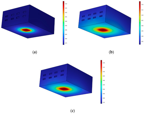 Shielding chassis’s thermal analysis: (a) metal; (b) carbon fiber; (c) nickel-plated carbon fiber.