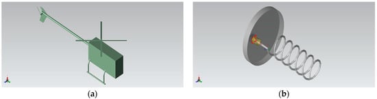 Firstly, we designed two test cases, an unmanned helicopter and a helical antenna, to evaluate the parallel performance on a single node. The models are shown in Figure 5a,b, respectively. The frequencies are set to 1.6–1.8 GHz and 0.2–1.0 GHz, and the excitations are plane wave excitation and waveguide port excitation, respectively. Gaussian signals are used for both cases. The computational domains are discretized into non-uniform conformal grids with dimensions of 7,468,047 (183 × 223 × 183) and 10,400,760 (173 × 334 × 180), respectively. Both cases adopt 15 layers of CPML absorbing-boundary conditions to truncate the computational domain’s six boundaries.
