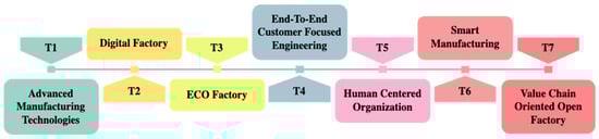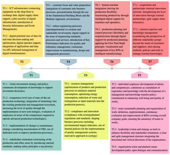 According to respondents, the maturity level in production automation requires an interest in advanced manufacturing technologies (T1, 90%), factory digitalization (T2, 84%), and smart manufacturing (T6, 79%).