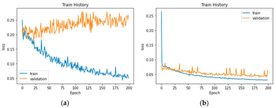 Four ways of sampling were used to obtain 1600 video clips of movie and TV videos with a length of 10 s. After sampling the frames, each image was compressed to a fixed size of 224 × 224 pixels. Figure 5 shows the training–validation loss plot with or without data enhancement, which indicates that the proposed data enhancement method effectively prevents overfitting.
