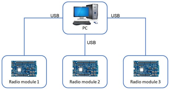 Figure 5 presents the test bench with which the validation tests were carried out, consisting of radio modules connected to a PC.