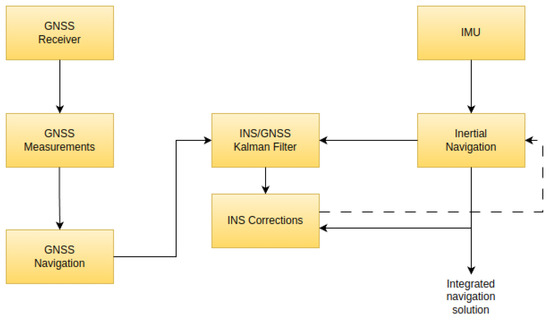The navigation system’s core comprises the components in charge of PNT (Positioning, Navigation and Timing) and Integrity estimation. The multi-sensor approach uses an algorithm that integrates all the elements that provide helpful information in the navigation process. Section 3 describes the loosely coupled algorithm that integrates inertial and GNSS data.