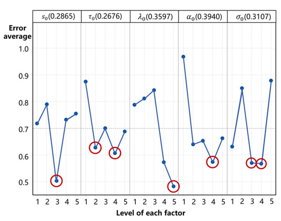 Letting , , the orthogonal experiments with 5 factors and 5 levels were performed, and the results are shown in Table 3.