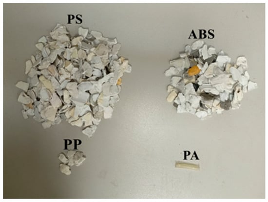 In the study [1], PS and ABS of different colors were used to make it easier to distinguish them. The use of single-colored plastics, e.g., white PS and black ABS, has a negative impact on sample differentiation. In papers [1,2,3,4], the mass ratio of the analyzed plastics was 1:1, which did not translate into the real composition of the refrigerator, in which PS was the most abundant.