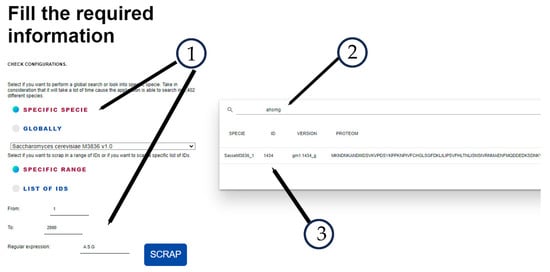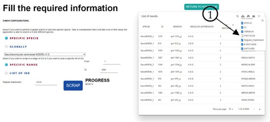 FungiRegEx helps in the recognition of repeated sequences, which holds substantial significance as it offers valuable insights into the functional and evolutionary roles of diverse organisms [,], driving evolution, inducing variation, and regulating gene expression []. Also, FungiRegEx is focused on FUNGI pattern detection and is customizable to adapt it to the resources of the computer or server where it is executed (in case the user wants a greater or lesser number of scraper instances). Finally, this tool could be deployed on a server or a computer if the user wants to.