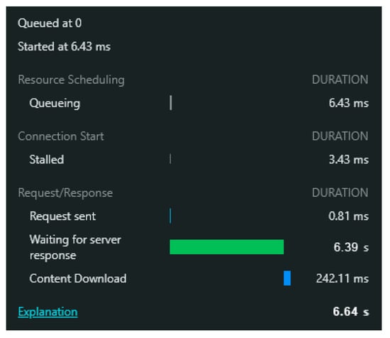 It should be mentioned that just requesting the JGI Mycocosm database and getting a response on the webpage takes around 6.64 s, as shown in Figure 8.