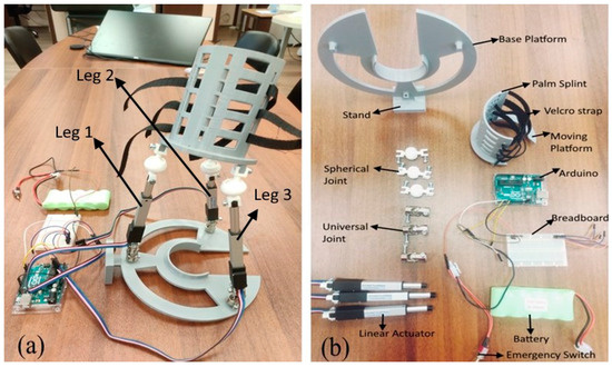 (a) Exoskeleton and (b) parts of the exoskeleton.