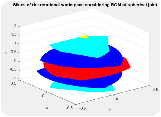 Selecting the right structure size of a parallel robot for the task at hand can be challenging because there are numerous performance criteria that need to be taken into consideration. Furthermore, because these criteria depend on the position of the moving platform and must be assessed across the robot’s whole workspace, they are challenging to analyse. It is obvious that the orientation workspace is crucial to the design process. All points on a moving platform that can be reached for any orientation within a set defined by the orientation angles are collectively referred to as the total orientation workspace. It explains an essential feature of a parallel robot by providing the useful workspace [41].