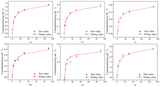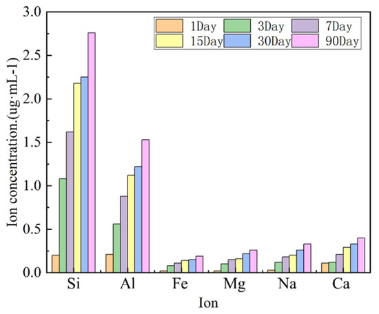 | Immersion Time | Si (µg·mL−1) | Al (μg·mL−1) | Fe (μg·mL−1) | Mg (μg·mL−1) | Na (μg·mL−1) | Ca (μg·mL−1) |