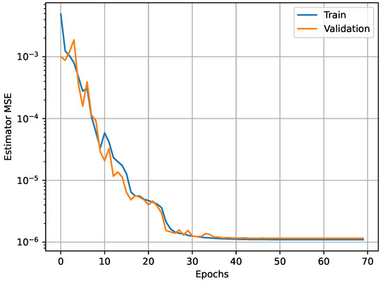 In this subsection, each hidden layer k generated the row vector data set with data set, where denotes the feature vector made up of all inputs from each of the parameters in Table 2. Next, the real-value OP sets from (16) and (18) were generated using each feature vector, which were then input into the simulation to obtain a distinct matching . In summary, the data set was created by concatenating the samples and was then separated into three new data sets: 80% for training (), 10% for validation (), and 10% for testing ().