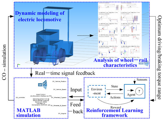 Therefore, this paper proposes a creep control method for mining electric locomotives based on RL. This method converts the impact of complex driving environments on mining electric locomotives into reward feedback values obtained by the electric locomotives from the environment. The impact of creep conditions that are difficult to quantify and evaluate on vehicles has been particularly considered in this method. The optimal range of creep rate is tried to achieve after training the mining electric locomotive to adjust the driving torque of the wheelset in this method. To achieve maximum driving efficiency under safe operating conditions is the goal of this method.