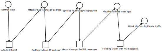 - Zhang, L.; Han, Y.; Wang, Y.; Quan, R. Petri Net Model of MITM Attack Based on NDP Protocol. In Proceedings of the 2022 International Conference on Networking and Network Applications (NaNA), Urumqi, China, 3–5 December 2022. [Google Scholar]
