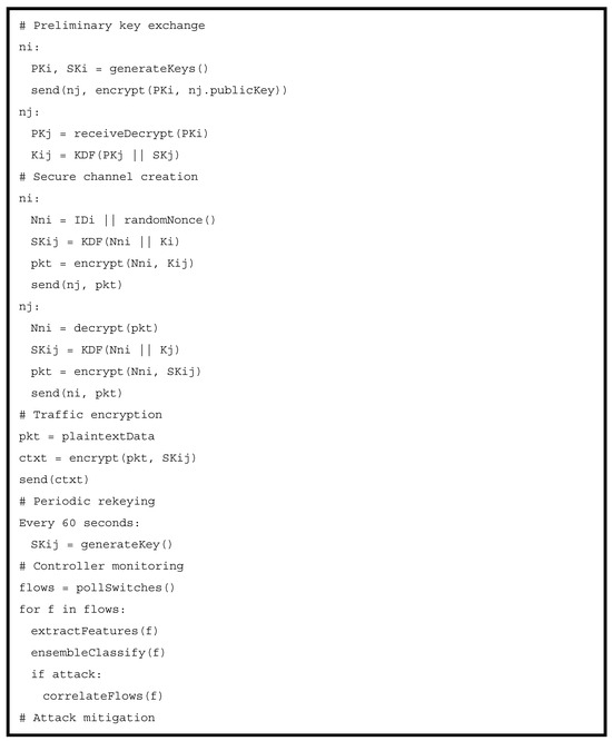 - A mathematical model is presented to formally define the protocol. Detailed pseudocode specifies the algorithms for key generation, encryption, attack detection, and mitigation.